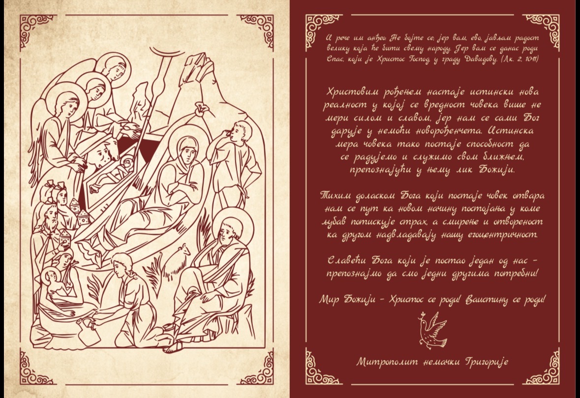 Božićna čestitka Njegovog Visokopreosveštenstva Arhiepiskopa diseldorfsko-berlinskog i Mitropolita Nemačkog gospodina Grigorija.